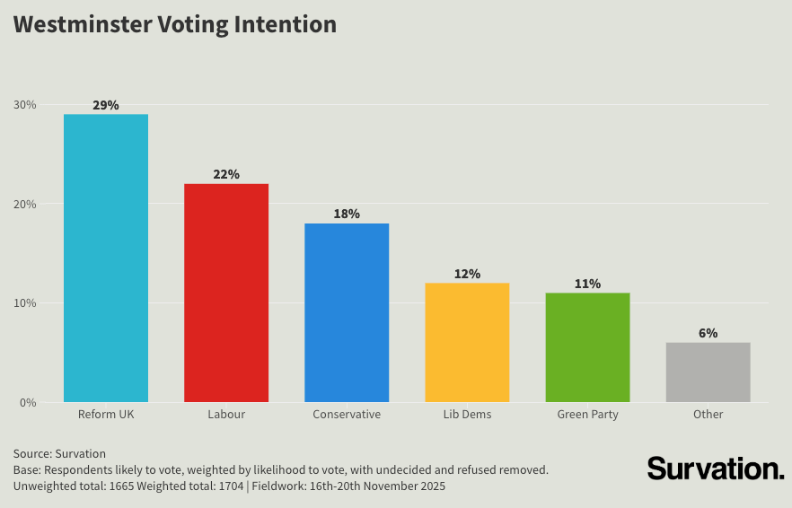 Survasi | Partai Buruh gagal memenangkan hati mayoritas Progresif Inggris, dan Reformasi masih menduduki puncak jajak pendapat
