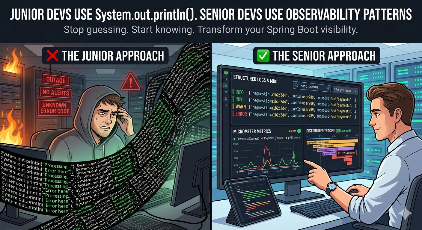 Anda tidak dapat memperbaiki apa yang tidak dapat Anda lihat. System.out.println() membuat Anda buta dalam produksi — dan Anda tidak akan mengetahuinya sampai semuanya sudah…